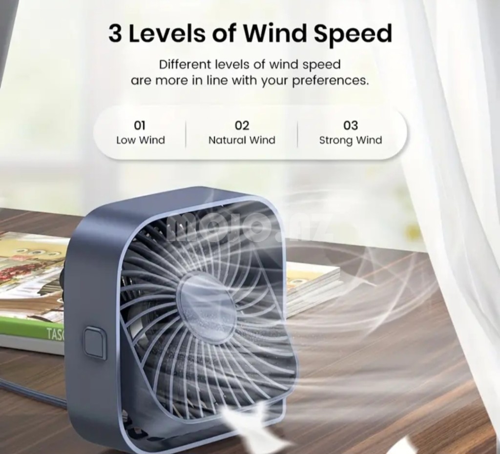TOPK markalı, dördbucaq formalı mini stolüstü ventilyator. Kompakt dizaynı sayəsində az yer tutur və istənilən yerə yerləşdirilə bilər. USB kabeli ilə işləyir və rahatlıqla kompüterə və ya adapterə qoşula bilir. 3 sürətdə işləyir. Tənzimlənən bucaq funksiyası ilə hava axınını istədiyiniz istiqamətə yönəldə bilərsiniz. Ofisdə, evdə və ya səyahətlərdə istifadə üçün idealdır. |