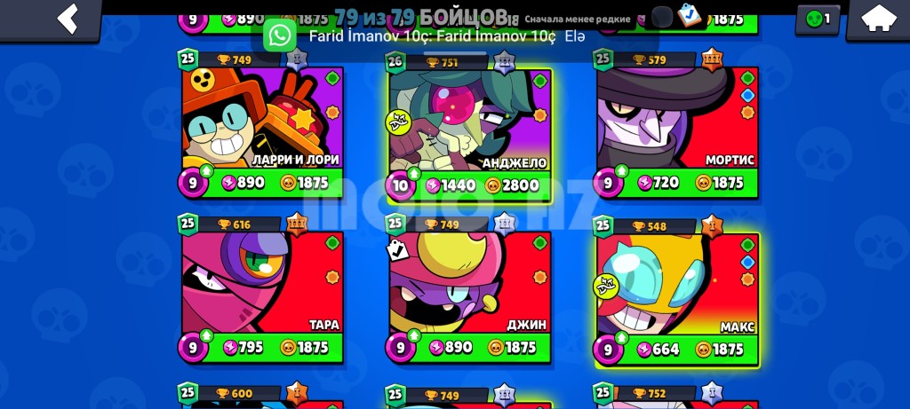 Brawl Stars hesabidir.Hesabda bütün karakterler 25 rütbədi bütün oldu kostyumlar var hesab 1 çi sezonnan oynayilir .Qiymət Sondur .Ətraflı məlumat üçün WHATSAPPDAN ƏLAQƏ Saxlaya bilərsiz