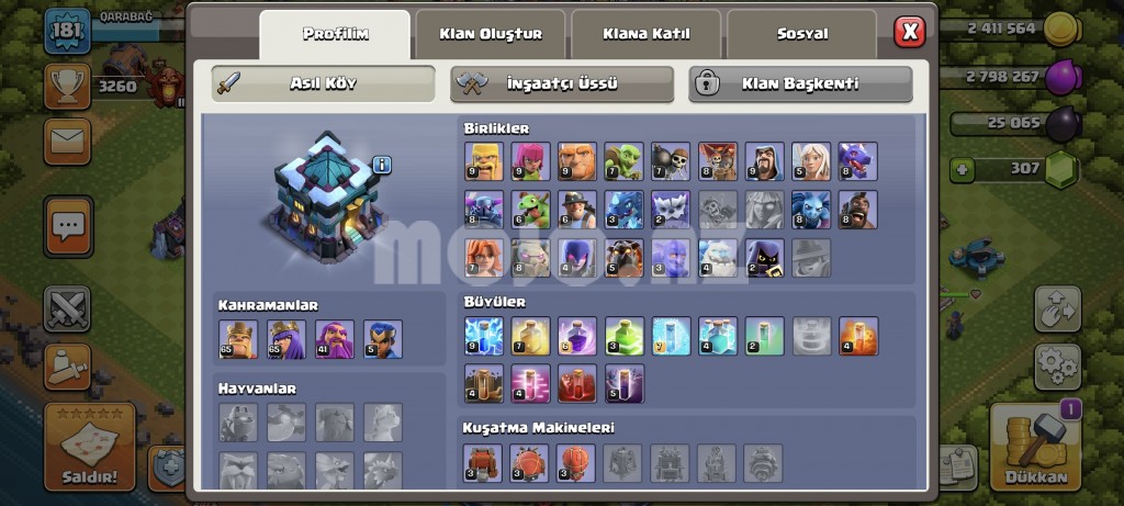 181səviyyə hesabdır, köy binası 12i fulldur,13ə vurulub ondan sora oynamamışam,2dəfə əfsanə liginə qalxıb əfsanə kubok sayı 0dı,6cı inşaatçı alınıb,inşaatçı üssü 1də səviyyə 9a qədər oynanılıb,görüşüb öz yanınızda hesabı götürüb emaili supercel idi dəyişə bilərsiz,təcili pul lazım olduğu üçün satılır. |