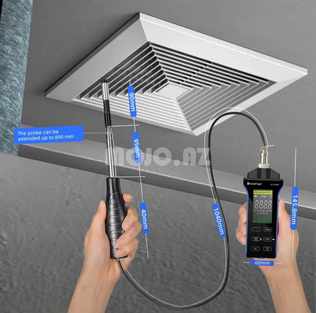 - Kiçik məkanların ehtiyaclarını ölçmək üçün xüsusi olaraq hazırlanmış yüksək dəqiqlikli, miqyaslı hava axını ölçən cihazdır.