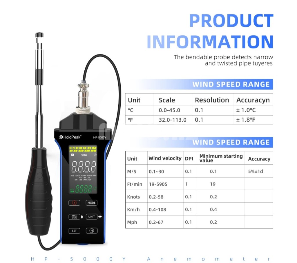 ● MAKS/MİN Ölçmə: İstifadəçilərə hərtərəfli təhlil aparmağa kömək etmək üçün cari, maksimum və minimum hava sürətini qeyd edir.