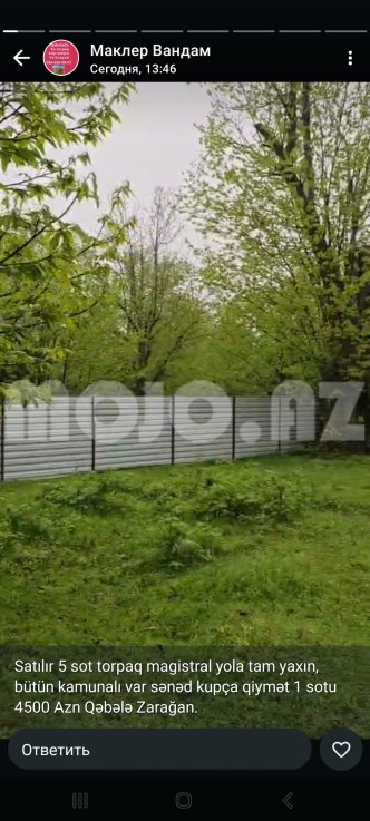 Qəbələ, Satılır 20 sot torpaq sahəsi