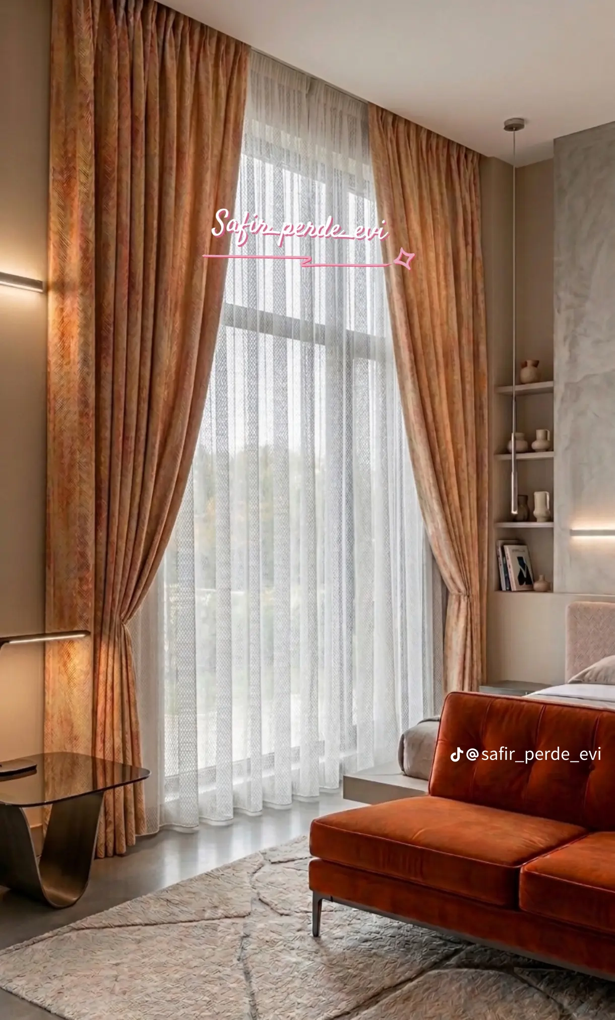 - İkiqat sistem: qaranlıq tutulmanı təmin edən sıx dekorativ pərdə + işığı zərif süzən tül.