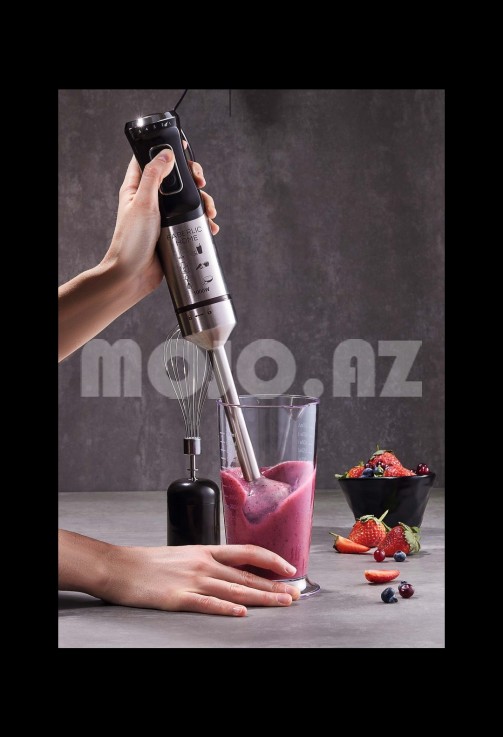Əl blenderi inqrediyentləri tez qarışdırmağa və mükəmməl şorba və ya souslar yaratmağa kömək edir. Bişirmə vaxtını azaldır və yeməyin gözəl dadını qoruyur 2 başlıq, doğrayıcı və qapaqlı ölçü qabı daxildir Güc - 1000 W Sürətin tənzimlənməsi Turbo rejim Gözəl dizayn Tərkibi: Paslanmayan polad, plastik. Rusiya istehsalı.