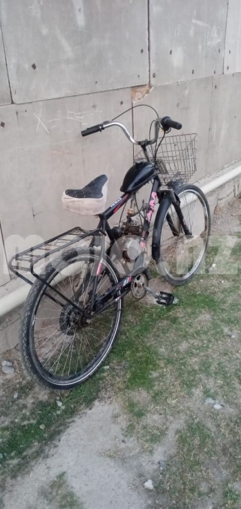 - Mühərrik: benzinlə işləyən velosiped mühərriki (A50/A80/A100 tipində kit üçün təlimat kitabçası əlavə olunur). Silindr, karbürator, buji, səsboğucu və yanacaq çəni quraşdırılıb.