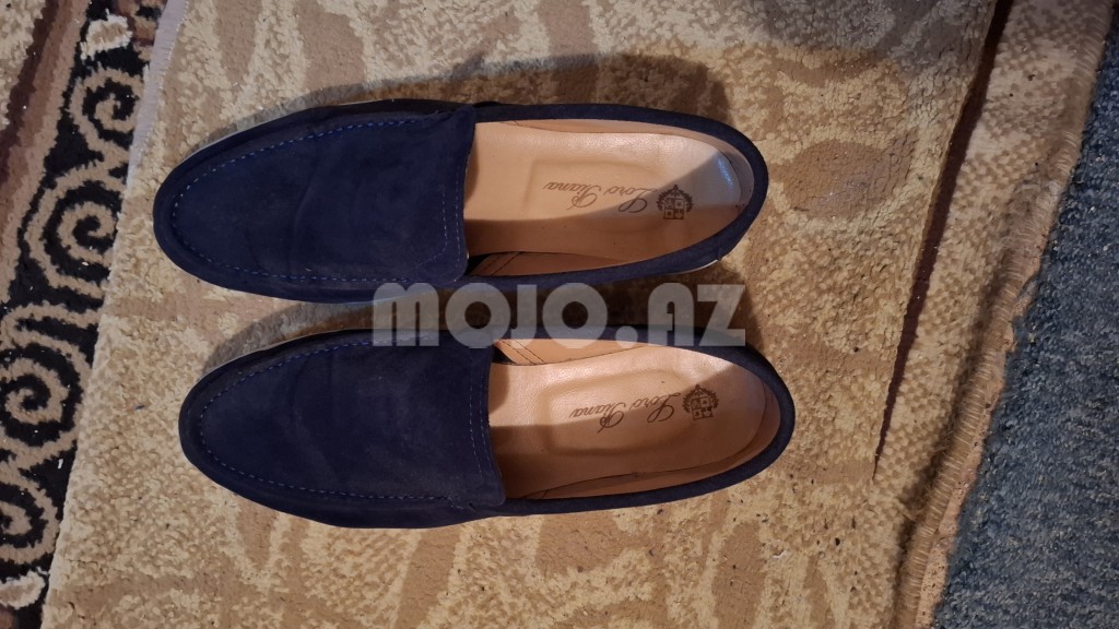 Loro Piana firmasının zamşa materialdan hazırlanmış, tünd göy rəngli slip-on ayaqqabıları. Rahat və dəbli görünüşü ilə həm gündəlik, həm də xüsusi günlərdə istifadə üçün idealdır. Hədiyyə alınıb deyə, ölçü düz gəlmir, ayağıma balacadır. 2 dəfə geyinilib