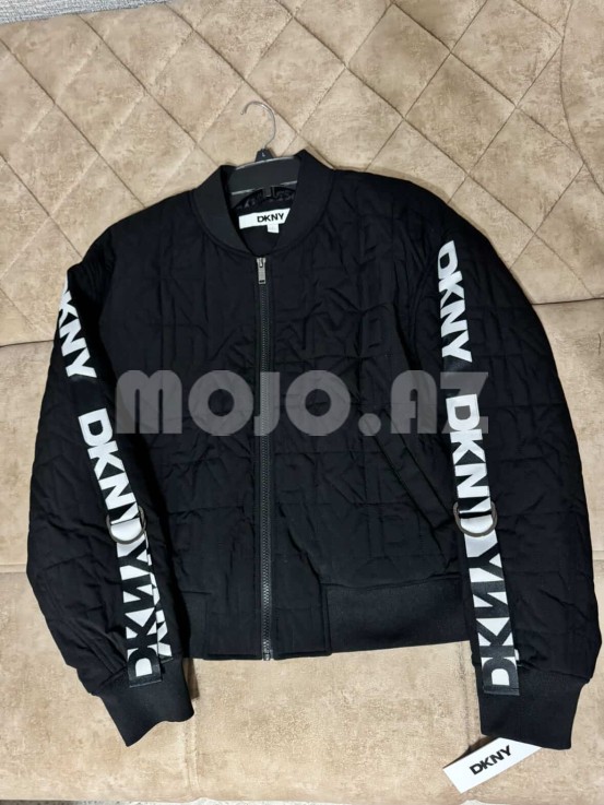 - Bəzək: qol boyunca iri “DKNY” loqotipli lent, ön hissədə loqotip relyefli tikiş naxışları