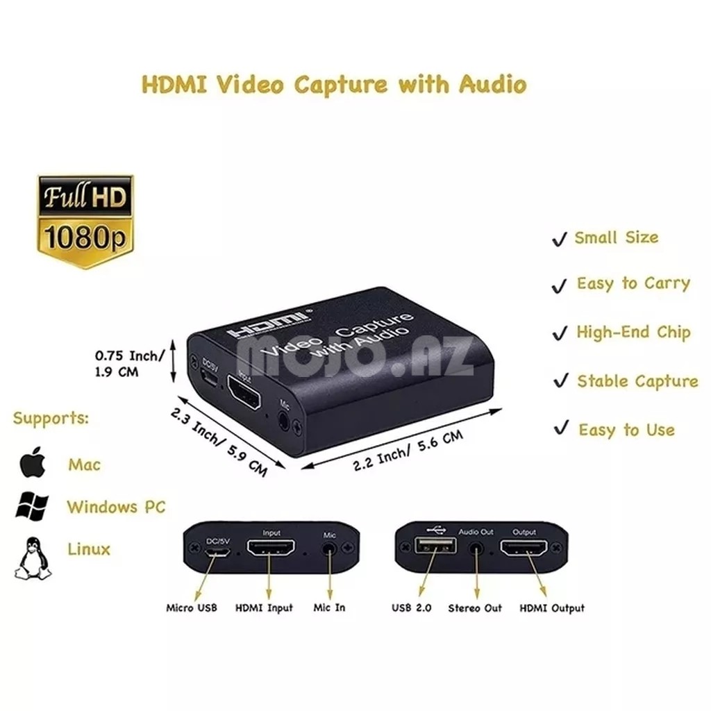 Video çəkiliş həm HDM video, həm də HDMI audio çəkə bilər, audio və video siqnalları kompüterlərə və smartlara göndərə bilər