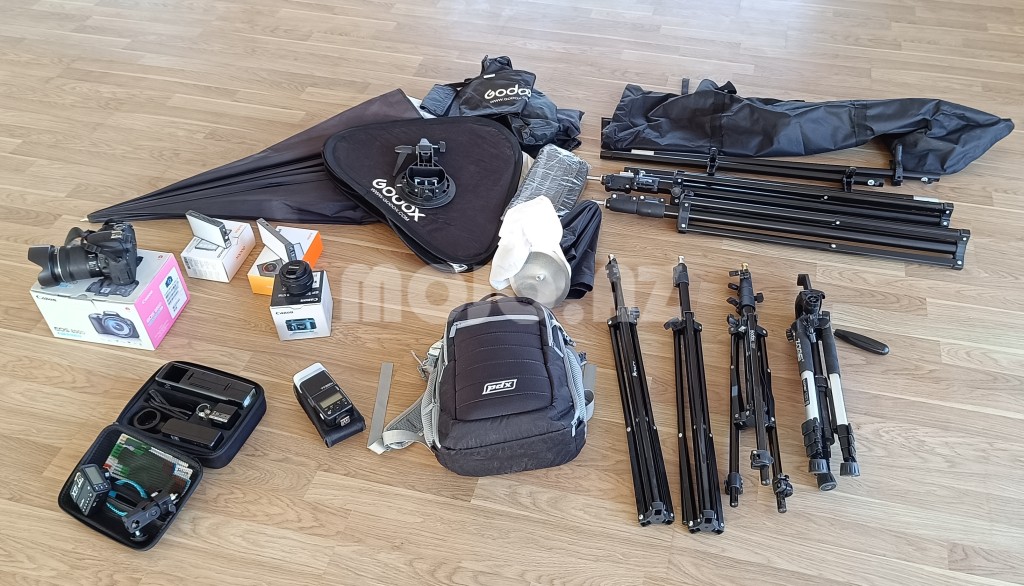 Canon 800D 18-135mm Godox TT350c Godox M1 Godox C5R Godox X2Tc Godox ad200 120sm godox softbox Godox 60smx60sm softbox Godox Ad-S7 45sm softbox Çanta Godox 190f stand Arcury 170sm stand 2 ədəd Zomei Q111 tripod Selens Backdrop 2.8x3m